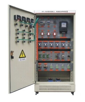 該裝置按標(biāo)準(zhǔn)電氣控制柜設(shè)計(jì)制造規(guī)格,充分利用雙面位置,柜內(nèi)裝有完成各種照明電路所需的單相電度表、日光燈、單聯(lián)開關(guān)、插座、感應(yīng)開關(guān)、漏電開關(guān)等,以及電氣控制所需要的多種低壓電器,如漏電斷路器、熔斷器、電流互感器、交流接觸器、時(shí)間繼電器、熱繼電器、中間繼電器、行程開關(guān)、按鈕、信號(hào)燈、轉(zhuǎn)換開關(guān)、電壓表、電流表、功率表及電度表等,為了延長電器使用壽命,各電器的接點(diǎn)都與接線端子相連,再由接線端子與被控制電氣連接。