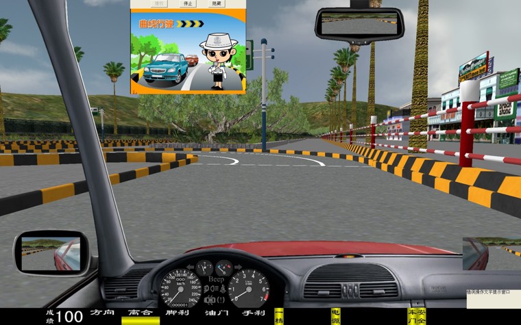 華育寬頻 HYM-9 型汽車駕駛模擬器是一種 80 度視角配 22 寸液晶彩顯的多功能新一代的主被動式汽車駕駛模擬器。它突破了原來在行駛十字路口向左拐的視線盲區(qū),行起車來更加方便逼真, 從而清楚的觀察車輛與路面的位置關(guān)系。是目前市場上絕對最新版的汽車駕駛模擬器軟件。 一、界面顯示 新增加 有: 轉(zhuǎn)向、 油門、 剎車、 離合器深淺進度; 檔位、 訓(xùn)練成績, 后視鏡(左、右、中)、 場景地圖顯示; 界面儀表盤上顯示有: 車速表、 發(fā)動機轉(zhuǎn)速表、 大燈、(遠光燈、近光燈、視寬燈)、 轉(zhuǎn)向燈、 安全帶提示燈、 車門關(guān)閉提示燈、 機油燈、 電瓶警告燈等。 在訓(xùn)練過程中、通過雙擊鼠標(biāo)、可實現(xiàn)正視和俯視圖像駕駛之間切換。 三、本模擬系統(tǒng)界面里不同車型之間自由轉(zhuǎn)換,其車型有: 小轎車、 吉普車、 無級變速車(自動檔)、 農(nóng)用車、 大貨車、 大客車、 (車型等多達六種學(xué)員可以在模擬器上體會不同車型的駕駛體會與樂趣) 四、學(xué)員可以根據(jù)自己駕駛的熟練程度選項訓(xùn)練,分三級訓(xùn)練,即 1 、初級駕駛; 2 、中級駕駛; 3 、高級駕駛訓(xùn)練: 初級駕駛訓(xùn)練 :初級駕駛可分為六種車型和三種練習(xí)方法,即 1 、被動駕駛; 2 、原地訓(xùn)練; 3 、簡易道路等訓(xùn)練 中級駕駛訓(xùn)練 :可選擇場景內(nèi)的相應(yīng)功能訓(xùn)練:車輛的數(shù)量、車型、道路、天氣等。 高級駕駛訓(xùn)練 :可選車輛的數(shù)量、車型、道路、天氣及 交通部規(guī)定的九項專項訓(xùn)練 即: 1 通過連續(xù)障礙、 2 通過單邊橋、 3 直角轉(zhuǎn)彎、 4 側(cè)方位停車、 5 上坡定點停車與坡道起步、 6 限速通過限寬門、 7 百米 加減檔、 8 起伏路駕駛、 9 曲線行駛等 。場景內(nèi)最多可達 60 輛其他車輛,達到模擬逼真的交通流狀況。 訓(xùn)練氣候 面有:“