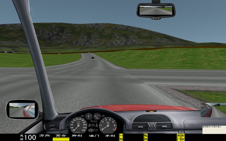 炫目訓(xùn)練” “白天”、“雪天”、“霧天”、“雨天”、“黑夜”,體會不同天氣狀況下的駕駛特點(例如,晴天炫目道路訓(xùn)練有早上及傍晚的炫目駕駛;雪天路面極滑;霧天視線極其不好;夜間駕駛會車時要遠近燈光的切換等)。 學(xué)生駕駛艙 座機由駕駛座、視屏彩電、汽車五大操作系統(tǒng)、核心計算機、高級進口傳感器、數(shù)據(jù)采集板等組成,各操作部件通過傳感器,經(jīng)數(shù)據(jù)傳感板傳輸。 駕駛模式 被動式:被動式駕駛適用于初學(xué)的學(xué)員,學(xué)生可以按照電腦語音提示進行規(guī)范的操作練習(xí)。 主動式:主動式駕駛與實際車輛相同。 功能 主視屏:顯示駕駛前方道路與周圍路況、使學(xué)生能感覺身在駕駛室操作著運行中的汽車。并顯示檔位、成績分?jǐn)?shù)。 后視鏡:能達到與真車相同的模擬效果?缮。 模擬儀表:顯示車速、里程、發(fā)動機轉(zhuǎn)速。并且可自行決定關(guān)閉或開啟。 特殊功能:通過鼠標(biāo)操作可由正常駕駛室駕駛模式切換到以府視式駕駛模擬 . 訓(xùn)練場景科目: ⑴ 一般道路; ⑵ 高速公路; ⑶ 城市道路;(包括:行人、自行車、其它車輛、雙黃線、崗?fù)ぁ⒕、紅綠燈、轉(zhuǎn)盤、交通標(biāo)志標(biāo)線等。) ( 4 )炫目道路 ( 5 )泥濘道路 ( 6 ) 山區(qū)道路; ( 7 ) 曲線穿樁、場地倒庫; ( 8 )“ 8 ”字型路; ( 9 ) 直角彎路、十字路口、丁字路口、匝道等。 ( 10 ) 蛇形路; ( 11 ) 就位停車; ( 12 ) 順行停車; ( 13 )雙邊橋; ( 14 )單邊橋; ( 15 )單凸橋; ( 16 )橫斷橋; ( 17 )騎越障礙; ( 18 )立交橋; ( 19 )隧道。 天氣 一般道路可選擇四種天氣:白天、雪天、霧天、雨天、黑夜。 畫面選擇 可以選擇“打開”或“關(guān)閉”:后視鏡、向?qū)У貓D、錯誤提示、成績等。 其它車輛選擇 各道路分 4 種數(shù)目選擇: 3 至 60 輛。 車型選擇 在訓(xùn)練中有六種車型:小轎車、吉普車、無級變速車(自動檔)、大貨車、大客車、農(nóng)用車等。 汽車模擬技術(shù) 汽車多自由度數(shù)學(xué)模型,實現(xiàn)汽車轉(zhuǎn)向、制動和加速的逼真模擬。 測試調(diào)整功能 傳感器測試:方向機的測試、離合器的測試、油門的測試、制動器的測試(腳剎)、手制動的測試、變速器各檔位的測試、鳴號、點火、開鎖。只要打開測試界面便一目了然。并可作學(xué)員操作曲線學(xué)仿 第二節(jié) 汽車駕駛模擬器軟件技術(shù)指標(biāo) ● 軟件增加 ※界面儀表盤上顯示有: 車速表、發(fā)動機轉(zhuǎn)速表、大燈、(遠光燈、近光燈、視寬燈)、轉(zhuǎn)向燈、安全帶提示燈、車門關(guān)閉提示燈、警告燈及機油電瓶燈等 , 與硬件配合,錯誤操作進行扣分并具有語音提示。 ※界面顯示新增加: 80 度全新視角寬頻模擬駕駛、轉(zhuǎn)向、油門、剎車、離合器深淺進度顯示;檔位、訓(xùn)練成績,后視鏡(左、右、中)、場景地圖顯示 ; 與硬件配合。 ※語言提示新增加: 壓雙黃線,闖紅燈提示;并在每次駕駛訓(xùn)練后系統(tǒng)自動給予評分即“成績優(yōu)秀”“成績中等”“成績不合格”的提示音及字幕。 汽車駕駛模擬器駕駛模擬軟件采用汽車多自由度數(shù)學(xué)模型,實現(xiàn)汽車轉(zhuǎn)向、制動和加速的逼真模擬;另外利用最新的計算機技術(shù),實現(xiàn)真實的三維場景及逼真的聲音模擬。 1 駕駛模式選擇 單機訓(xùn)練:單臺駕駛艙獨立訓(xùn)練,訓(xùn)練時候場景內(nèi)部的其他車輛、自行車、行人等由系統(tǒng)根據(jù)交通規(guī)則及交通模型發(fā)出,模擬真實的交車、會車、跟車等。 被動駕駛:系統(tǒng)根據(jù)已經(jīng)配置好的被動駕駛文件播放視頻以及操作語音提示, 學(xué)員可以在沒有教練指導(dǎo)下按照操作語音提示學(xué)習(xí),學(xué)習(xí)正確的操作順序。被動駕駛文件可以自行配置,以便根據(jù)自己的特點配置出符合訓(xùn)練大綱要求的被動駕駛文件。被動駕駛功能對初學(xué)駕駛的學(xué)員來說非常有用,如果學(xué)員沒有按照提示操作,系統(tǒng)將報錯并扣分。 網(wǎng)絡(luò)互動:通過中央控制臺可以最多連接 25 臺駕駛艙,實現(xiàn)聯(lián)網(wǎng)訓(xùn)練,場景中可以看見其他駕駛艙所駕駛的車輛,并看見其他駕駛艙所駕車輛的轉(zhuǎn)向燈、剎車燈以及聽見其他車輛的喇叭。 2 訓(xùn)練場景科目 訓(xùn)練場景包括: 一般道路 :場景中有鐵道路口、單行道、限定距離換檔等內(nèi)容。 高速公路 :場景中有超車道、行車道、出口等交通標(biāo)志牌,車距確認、隧道、高速公路出入口等內(nèi)容。 城市道路 :場景中有立交橋、十字路口、丁字路口、環(huán)形島、環(huán)城路、行人橫穿道路等內(nèi)容。 炫目道路: 使學(xué)員在晴天強光照耀下體會行駛中車距的確認、會車觀察車輛與來車的位置關(guān)系、行人橫穿道路等訓(xùn)練項目。 危險道路 :危險場景中設(shè)置有行人突然橫穿公路、路口突然出現(xiàn)橫穿自行車、路口突然出現(xiàn)汽車、道路維修等危險狀況。 場地訓(xùn)練 :曲線穿樁、倒車移位、 “ 8 ”字型路、直角彎路、蛇行路、就位停車、順心停車、斜位停車、雙邊橋、右單邊橋、左單邊橋、單凸橋、雙凸橋、橫斷路、騎越障礙、山區(qū)道路、坡道。 場地 9 項 :通過連續(xù)障礙、通過單邊橋、直角轉(zhuǎn)彎、側(cè)方位停車、上坡定點停